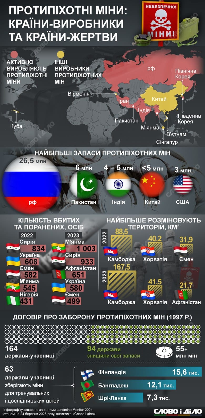 Загалом 58 країн світу забруднені протипіхотними мінами.