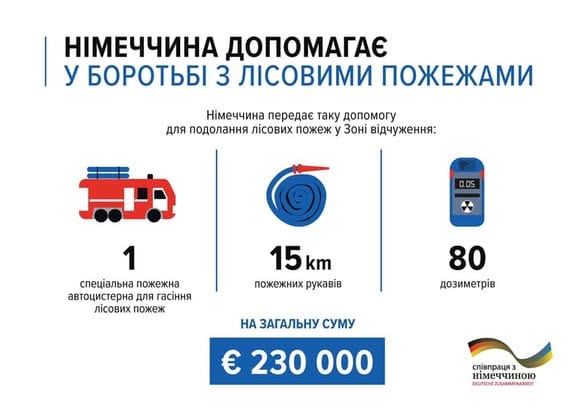 За дорученням Федерального уряду Deutsche Gesellschaft für Internationale Zusammenarbeit GIZ GmbH передає Державній службі з надзвичайних ситуацій ДСНС України спеціальне обладнання для локалізації лісових пожеж навколо Чорнобильської АЕС.